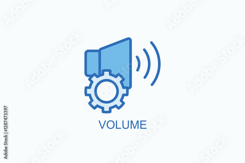 sound, volume, gear, setting, audio, technology, communication, cogwheel, configuration, speaker, setting, electronic, vector, logotype, icon, blue, colours, line