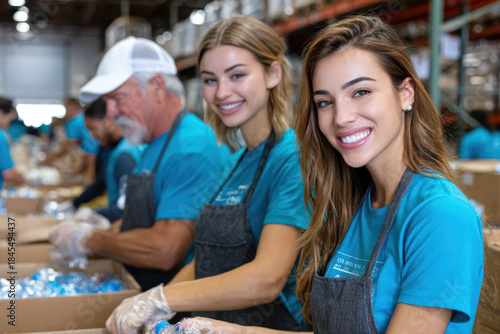 volunteer, community, warehouse, packing, supply, teamwork, smiling, support, charity, service, helping, people, organisation, daytime, cooperation, effort, blue, shirt, donation, working, face, active, engagement, social, impact, event, help, generosity, kindness, local, mission, friendship, group, assist, purpose, contribute, hard-working, box, smile, together, work, positive, atmosphere, shared, goal, initiative, volunteer
