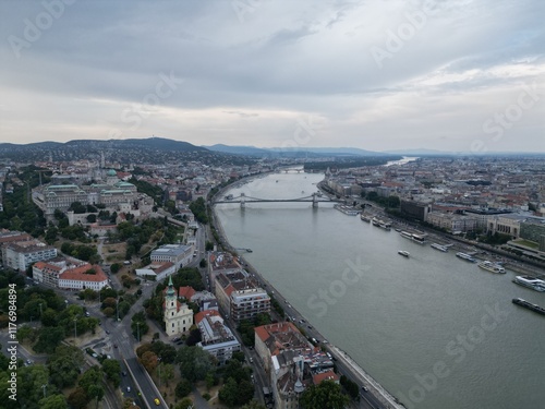 church, notre dame, cellblock, castle, buda, stronghold, place, danube, budapest, hungary, architecture, gothic, statue, ornament, hill, citadel, fortification, belvedere, mediaeval, palace, luxury hotel, city, church steeple, capital, downtown, urbanism, historical building, historic, round, heritage, chantry, view, tour tourism, touristy, bridge, scenic, panorama, landscape, travel, view, dramatic, scene, filming, aerial view, drone