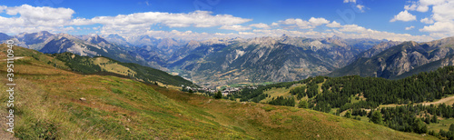 Vue panoramique des Alpes du sud et la vallée de Guillestre en été.
