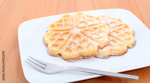 waffle, waffle, bake, dessert, nourish, food, food, grease, fork, cookie, pie, kitchen, food, dessert, sweet, alimentary, food, aliment, icing sugar, food, speciality, sweet, plate, table, sugar