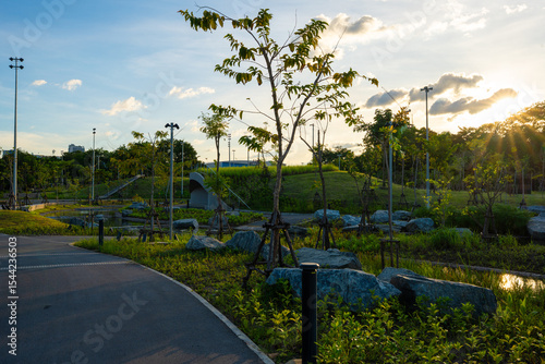 Walk and run asphalt road in city public park