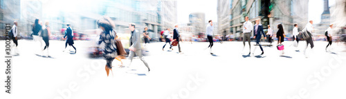 Walking people blur. Lots of people walking in the City of London. Wide panoramic view of people crossing the road.