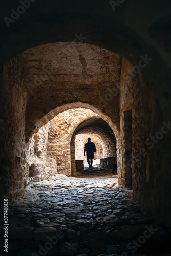 wall, paseo, silhouette, path, old, fortress, figure, corridor, cobbled, architecture, arch, caucasian, white