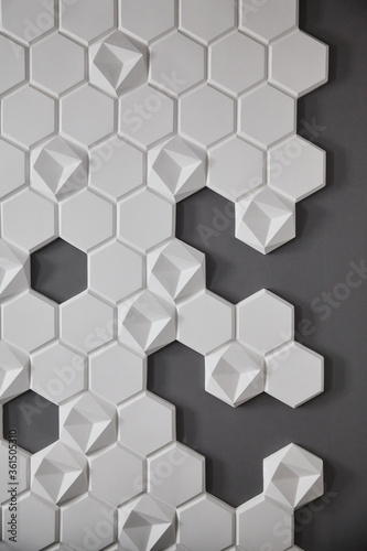 wall background. background texture. wall with textured hexagons. the honeycomb on the wall. gray wall