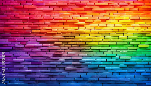 Wall of bricks in the rainbow colors pink, purple, red, blue, green and yellow background wallpaper