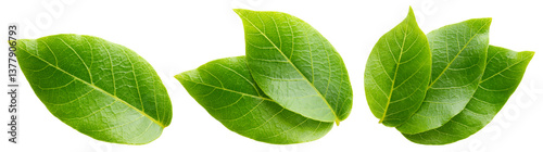 Walnut leaf isolated png. Green walnut leaf on white or transparent background. Flat lay leaves no background. Top view nut leaves. Full depth of field.