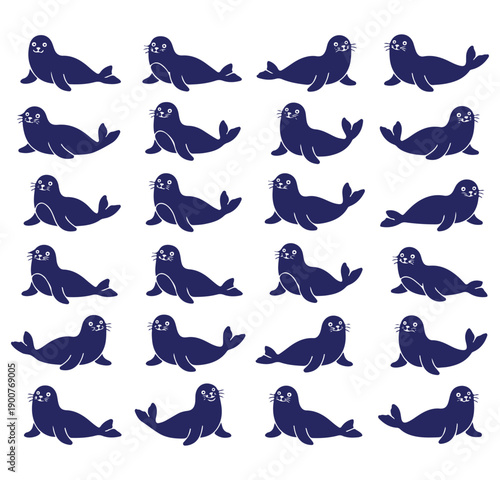 Walrus Silhouette Vector, Sea Lion Clipart Graphics, Arctic Animal Design, Marine Mammal Set, Ocean Wildlife Pack, Seal Silhouette Collection, Aquatic Animal Bundle