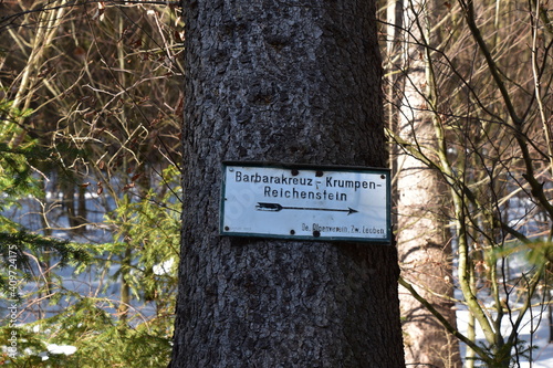 tree, hike, septum, signpost, hint, iron ore, austria, alpen, europa, forest