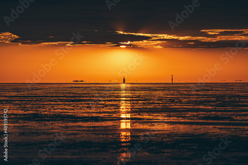 north sea, foreshore, national park, lower saxony, sunset, sea, sun, water, ocean, sunrise, heaven, horizon, nature, countryside, beach, cloud, orange, evening, travel, boat, summer, dawn, coast, wave, morning, light, dusk