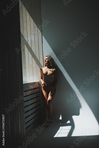 War in Ukraine, prehistory of the Ukrainian conflict. The Ukrainian flag draws on the woman's body. Peace, activism, no war and support concept