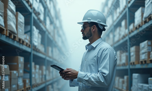 warehouse, manager, inventory, check, tablet, technology, logistic, distribution, management, men at work, employee, industry, business, professional, stock, shelf, box, cardboard box, cargo, storage, factory, manufacturing, digital, modern, efficient, optimization, control, planning, datum, analysis, team, collaboration, productivity, success, growth, future, innovation, progress, development, solution, strategy, operation, process, online, app
