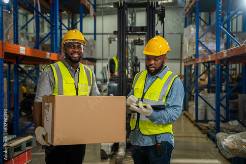 Warehouse worker checking stock products in a large distribution warehouse.,Warehousing, Logistics in stock.