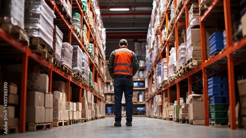 Warehouse Worker in Organized Storage Area
