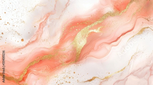 Warm coral marble with subtle golden accents, soft and inviting, polished smooth surface, intricate flowing patterns, luxurious and refined, high-resolution and elegant design