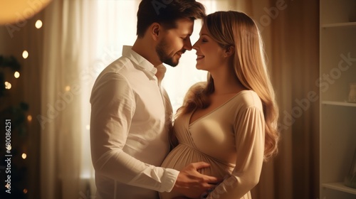 Warm embraces from a husband to his pregnant wife, the bliss of family happiness, a time of joyous moments.