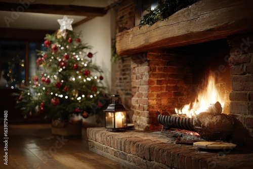 fireplace, christmas tree, decoration, light, cosy, holiday, warmth, festive, rustic, glow, ornament, celebration, living room, winter, home, joy, family, gathering, nature, pine, joyfulness, seasonal, ambience, hearth, traditional, star, relaxation, togetherness, cheer, candle, brick, twinkling, environment, atmosphere, interior, bright, log, fireside, spirit, evergreen, comfort, bliss, calmness, cheerfulness