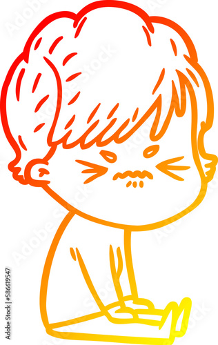 frustrated, annoyed, angry, woman, female, girl, expression, stressed, people, cartoon, warm, line, gradient, spectrum, drawing, illustration, retro, doodle, freehand, free, hand, drawn, quirky, art, artwork, funny, character
