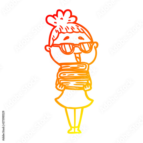 warm gradient line drawing cartoon happy woman wearing spectacles