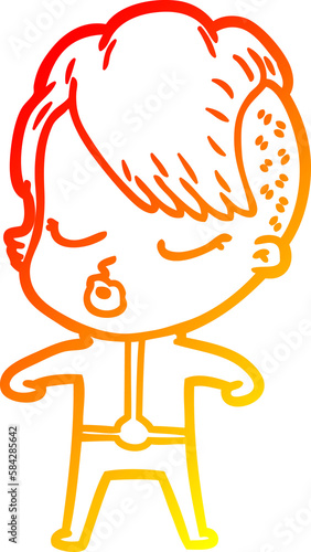 pretty, cute, hipster, girl, woman, female, cartoon, warm, line, gradient, spectrum, drawing, illustration, retro, doodle, freehand, free, hand, drawn, quirky, art, artwork, funny, character