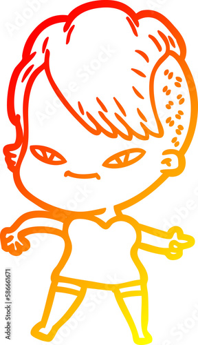 warm gradient line drawing cute cartoon girl with hipster haircut