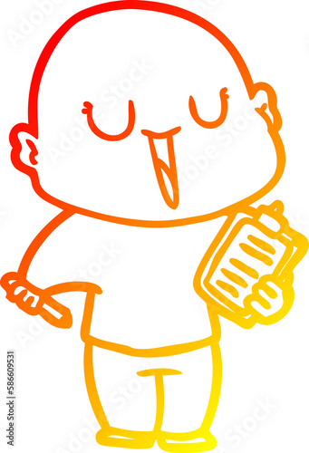 warm gradient line drawing happy cartoon bald man
