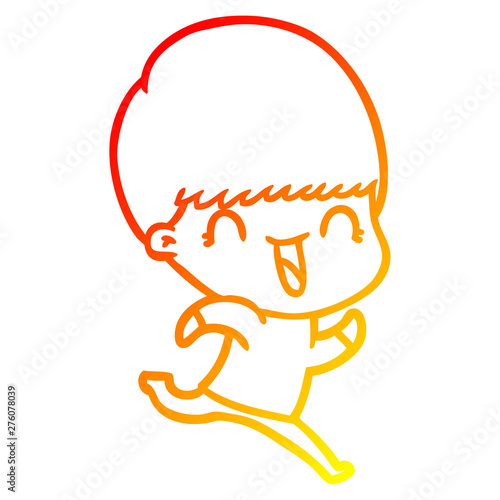warm gradient line drawing happy cartoon boy