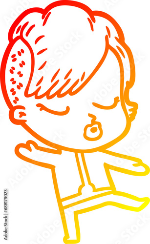 warm gradient line drawing of a cartoon pretty hipster girl