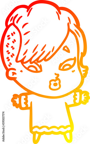 woman, female, girl, surprised, expression, cartoon, warm, line, gradient, spectrum, drawing, illustration, retro, doodle, freehand, free, hand, drawn, quirky, art, artwork, funny, character