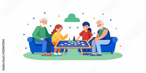 generation, young couple, grandparent, strategic, fun, indoor, family, activity, candid, lifestyle, game, bonding, us, britain, canada, australia, german, france, italy, spain, japan, holland, heritage, tradition, relaxation, competition, learning, connection, copy space, artist