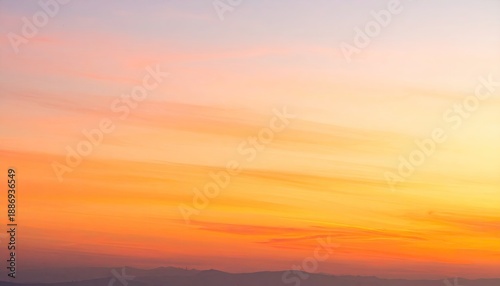 sky, cloud, sunset, sunrise, orange, pink, yellow, purple, gradient, soft, serene, tranquil, peaceful, calm, natural, beauty, landscape, horizon, light, dawn, dusk, evening, morning, atmospheric, gentle, aethereal, dreamlike, pastel, high-coloured, bright, vibrant, glowing, radiating, airy, wispy, feathery, streaked, layered, textured, huge, open, expanse, panorama, view, scene, atmosphere, colours