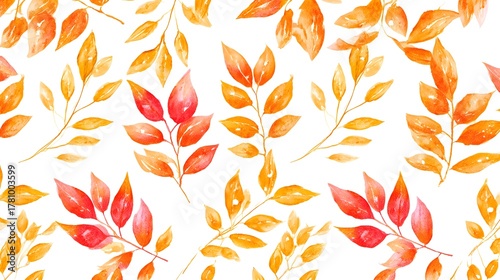 Warm watercolor autumn leaves elegant pattern design for fabric wallpaper packaging