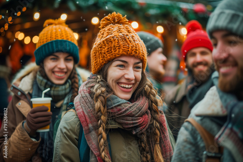 winter, friends, laughter, multicultural, gathering, interaction, diversity, togetherness, bonding, beverage, conversation, warmth, youth, community, enjoyment, snowflake, tradition, trendy, vibrant, friendship, pleasure, weekend, joy, relaxation, seasonal, festive, company, connection, group, companionship, daylight, comfort, emotion, smiling, happiness, joyous, market, cosy, contentment, socialising, chatter, chill, energy, candid, authentic, coat, tea, urban, strolling