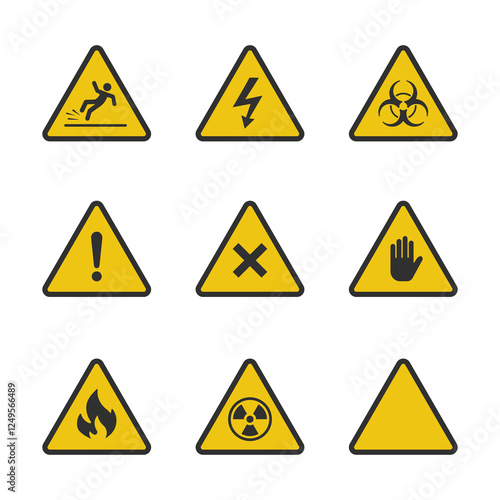 biohazard, radiation, warning, caution, signs, danger, information, symbol, yellow, safety, attention, icon, triangle, background, fire, graphic, illustration, stop, wet, floor, hand, high, voltage, nuclear, collection, hazard, set, black, flat, pictogram, signs, road, electricity