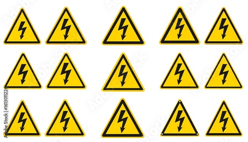 electrical, warning, danger, hazard, safety, signs, triangle, yellow, black, symbol, caution, electricity, voltage, current, potential, shock, risk, pictogram, equipment, protection, industrial, construction, maintenance
