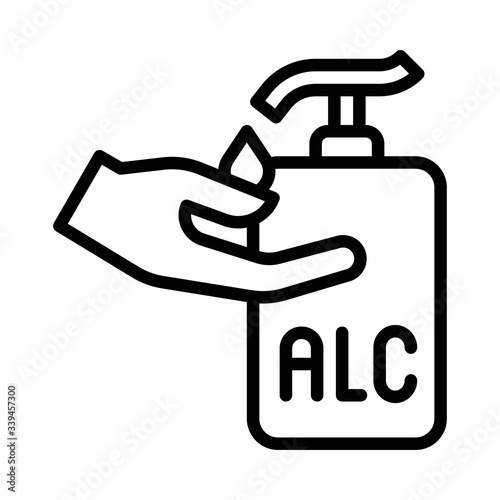 wash hand or hygiene related alcoholic sanitizer drop on hand with written text vector in lineal style,