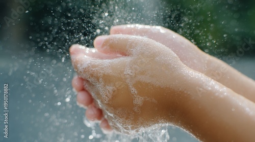 Washing hands action outdoor setting close-up image cleanliness concept nature background refreshing environment