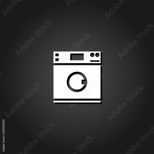 Washing machine icon flat. Simple White pictogram on black background with shadow. Vector illustration symbol