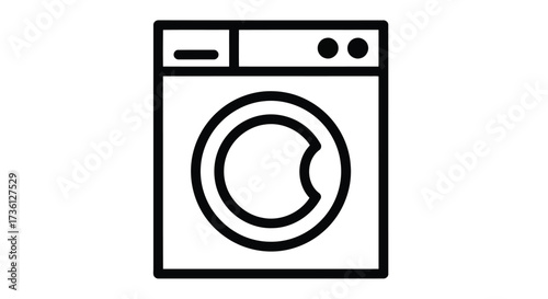 washing, machine, laundry, appliance, clean, laundered, clothes, home, domestic, household, equipment, drum, door, cycle, spin, water, buttons, control, panel, graphic, design, symbol, line, art, drawing, outline, simple, modern, chore, textile
