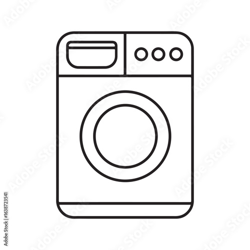 washing, machine, icon, line, laundry, washer, appliance, household, clothes, clean, outline, vector, symbol, illustration, simple, launderette, home, domestic, equipment, technology, electric, laundered, cleaning, chore, housework, service, spin, cycle, hygiene, fresh, graphic, design, pictogram, signs, isolated, black, white, element, drum, door, buttons, water, soap, detergent, fabric, textile, automatic, front, load