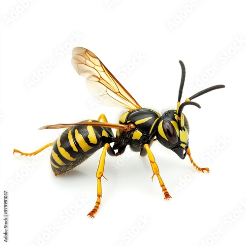 Wasp cleaning itself in front of a white background.generative ai