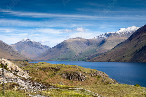 lake district, britain, national park, pebble, ripple, water, cloud, blue, blue skies, white cloud, wave, winter, autumn, international landmark, england, europa, northern europe, nature, lake, landscape, mountain, sky, outdoors, horizontal, color image, no people, calmness, hiking, day