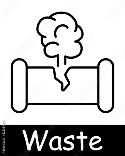Waste line icon. Industrial pipe, air filter, pollution, air emissions, waste management, environmental impact, exhaust, factory, contamination, environmental protection, industry.