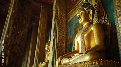 Wat Kaew (Temple of the Emerald Buddha) in Bangkok, showcasing its detailed gold and emerald accents.