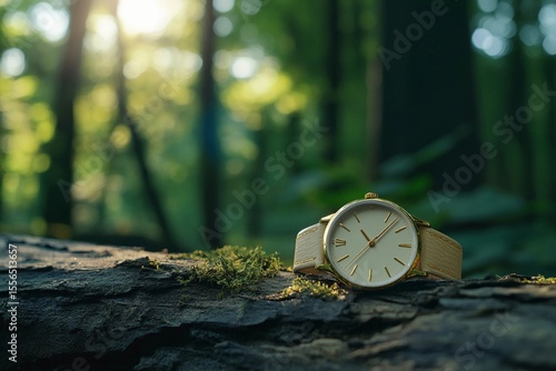 wristwatch, fallen, log, tranquil, forest, nature, resting, wood, calm, time, peaceful, natural, rustic, vintage, green, environment, detail, texture, closeup, serene, aged, quiet, still