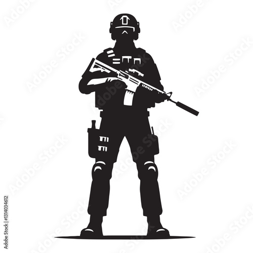 Watchful Police Officer silhouette, ever-vigilant in safeguarding society - Police illustration - Minimalist Police vector - Profession silhouette
