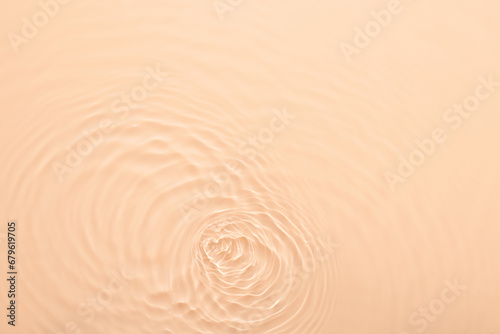 Water beige surface abstract background. Waves and ripples texture of cosmetic aqua moisturizer with bubbles.