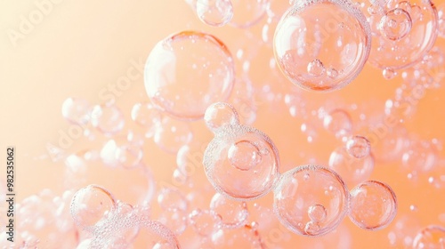 Water bubbles clustered in abstract patterns on a pastel peach background.