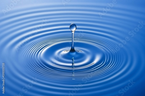 Water Drop Splashing Creating Circular Waves in a Calm Blue Surface