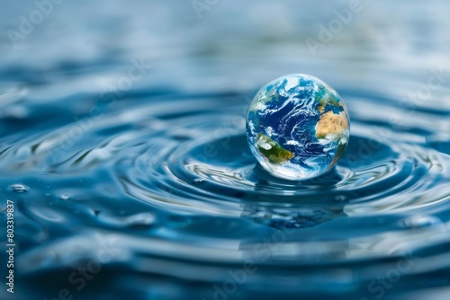 Water drop with planet earth inside, clean environment concept